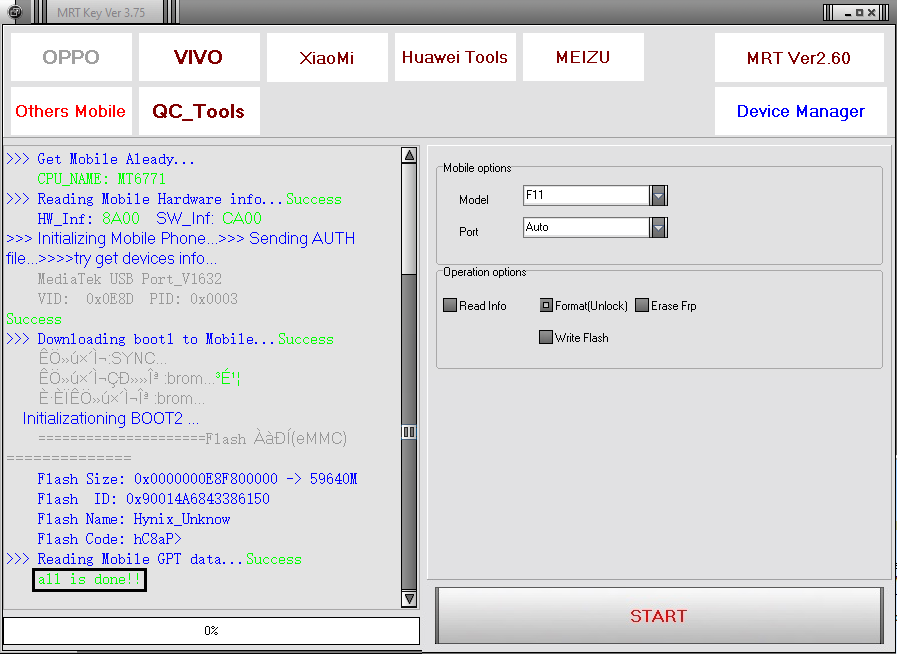 OPPO F11 CPH1911 Pattern Unlock in MRT Key you can easily solve with this method if you are fresher technician or experienced technician in android software related if the error occurs of USB not recognized then your USB is not working. if a battery is not charged, your USB socket will not proper work and you will fail in this method. if any issues please write your questions in the comment box I will try my best to help you.
